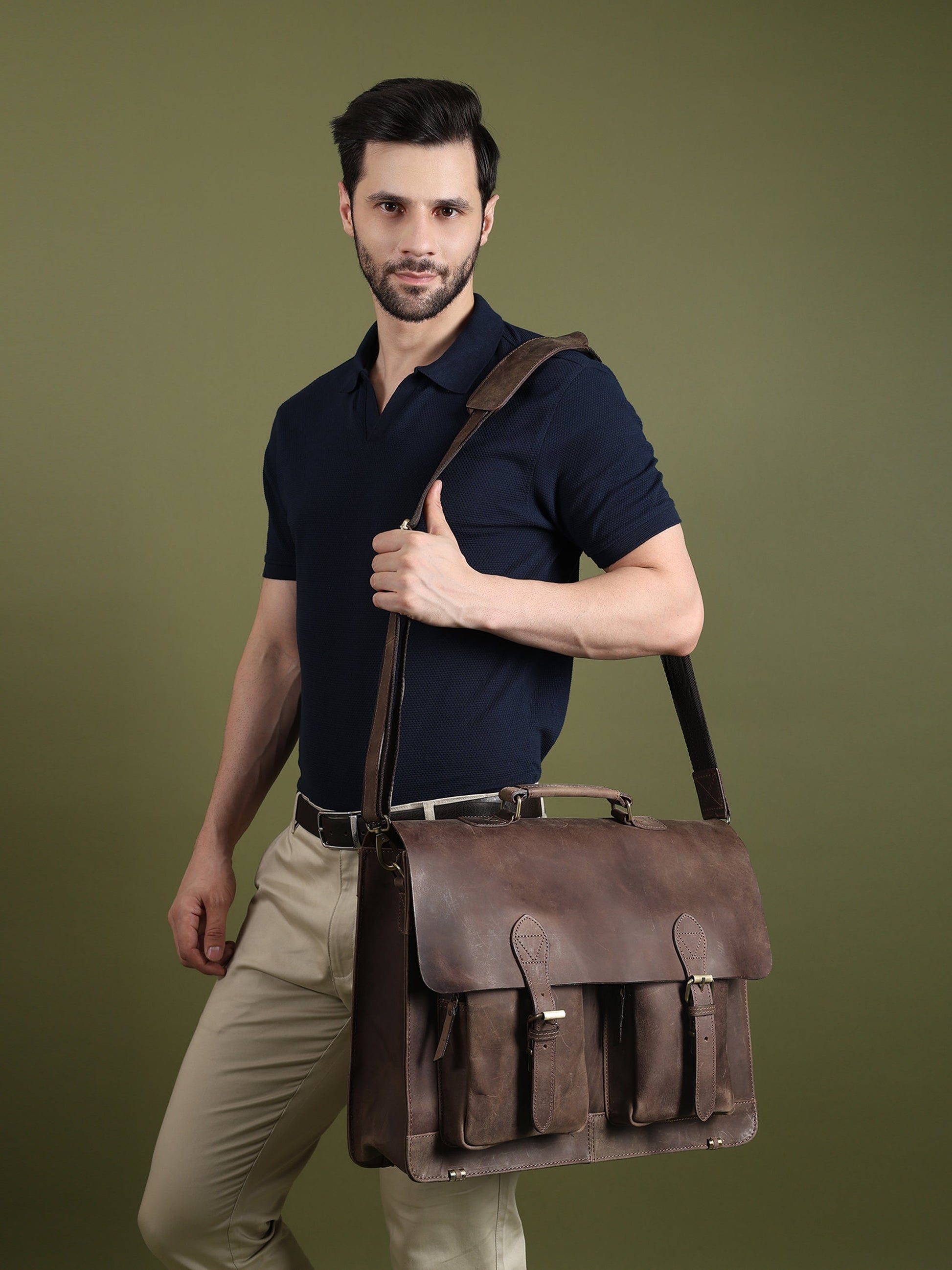 This Buffalo Leather Messenger Bag is expertly crafted from premium full-grain buffalo leather, offering both durability and timeless sophistication. It features easy-open push clips, a top handle for versatile carrying, and an adjustable leather strap that lets you switch between briefcase and crossbody styles.