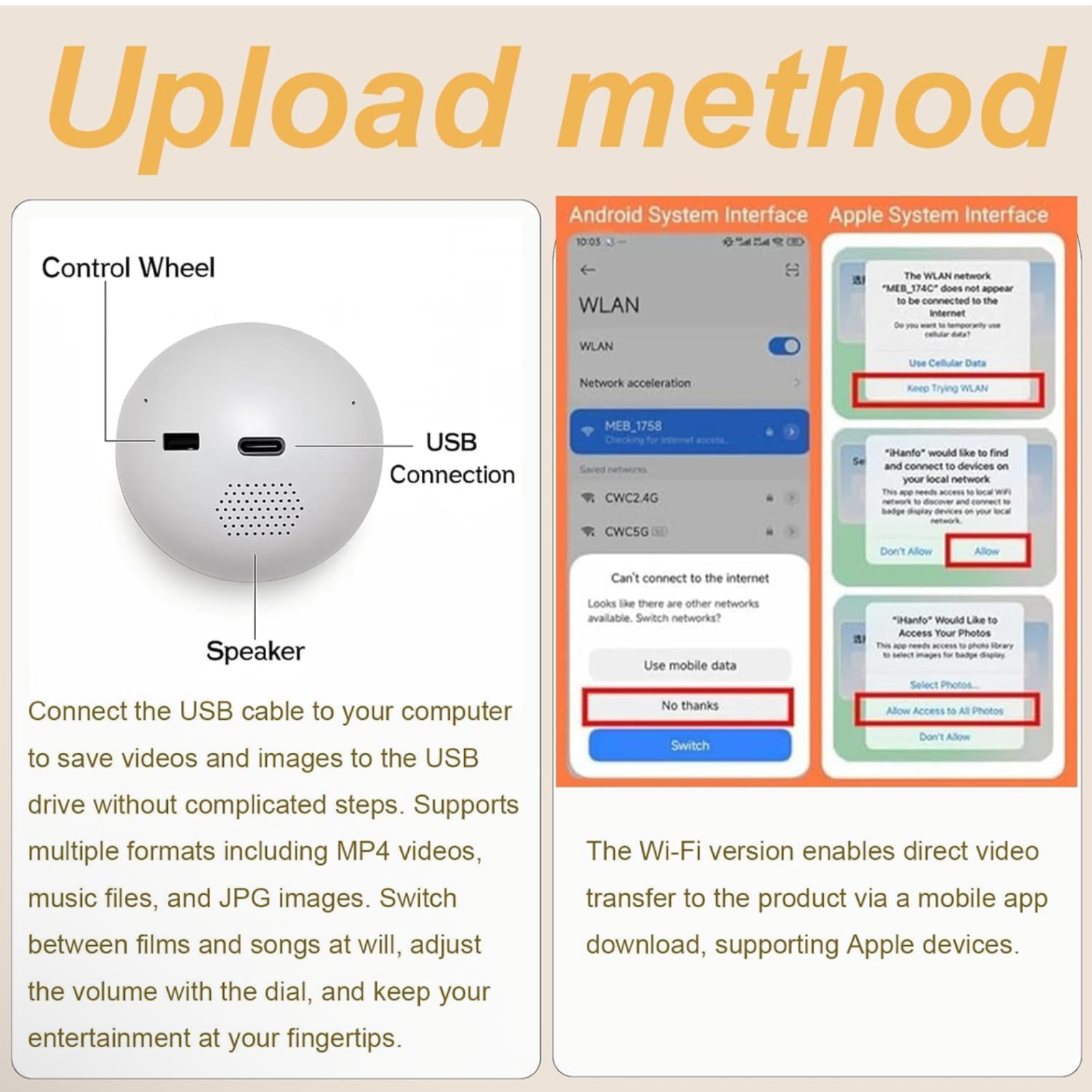 Upload your photos and videos quickly using a USB drive or SD card → With just a few steps, your cherished moments become a beautiful, tangible keepsake → Windows system required for file conversion and video loading.