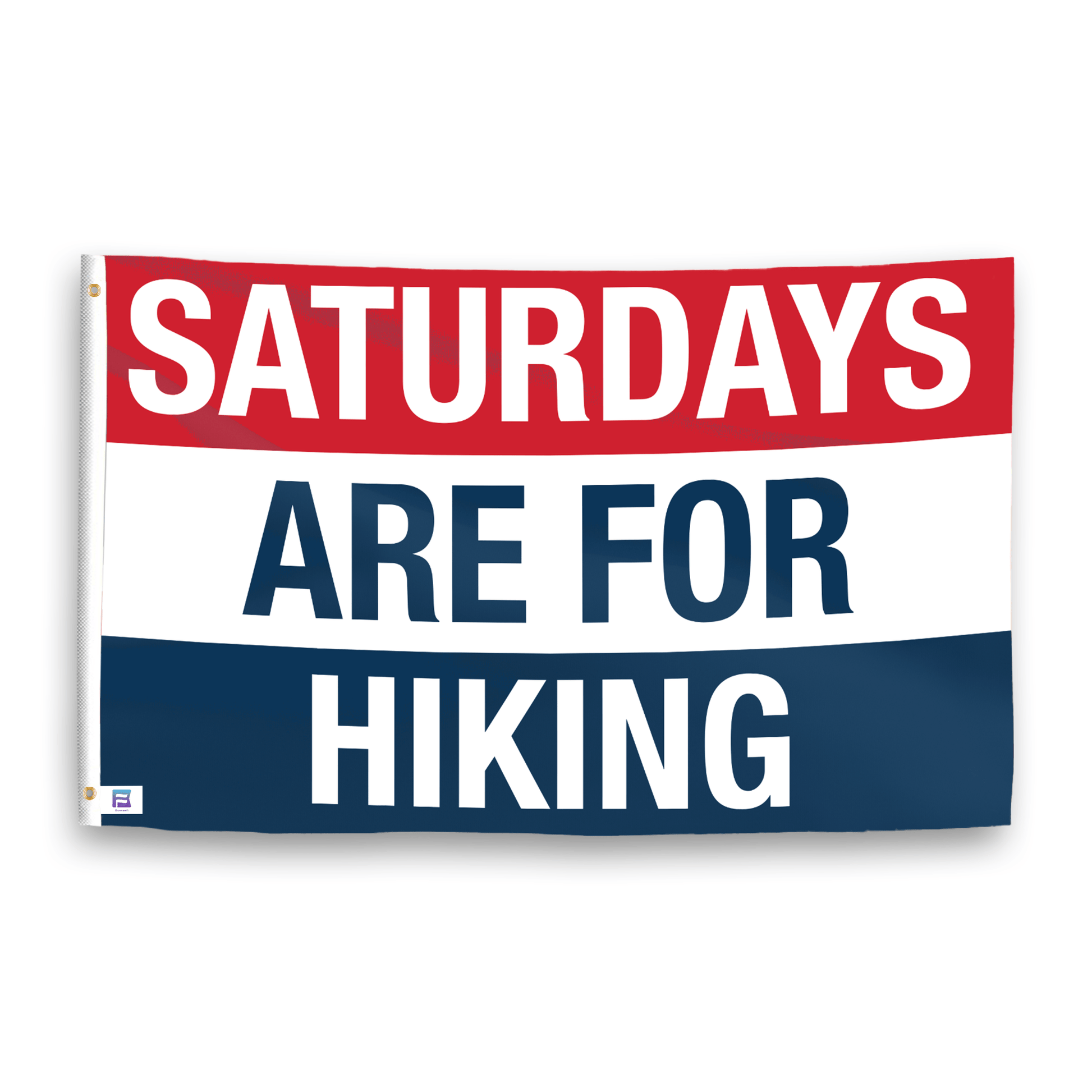 Introducing the Saturdays Are for Hiking Flag from Bannerfi — a bold outdoor flag designed for hikers, weekend explorers, and nature lovers who want to celebrate trail time at home, at events, or along the road less traveled. Its vibrant red, white, and navy design and durable construction are built to endure outdoor use with lasting visibility.
