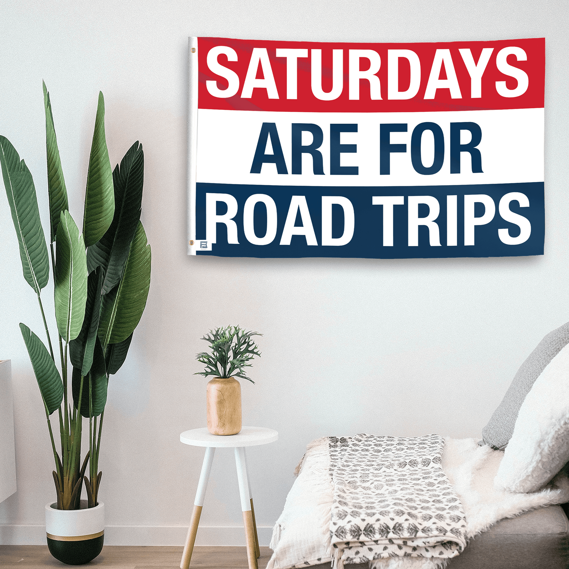 From Bannerfi, the Saturdays Are for Road Trips Flag is the perfect outdoor flag to celebrate your love of travel and adventure. Designed for travel enthusiasts, it combines bold typography with a patriotic color scheme to stand out at home, on the road, or at gatherings.